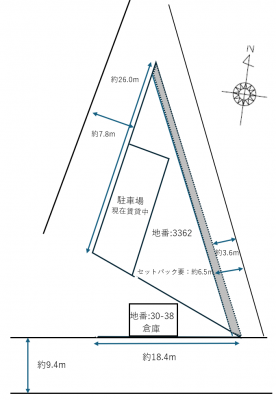 ・引き渡し条件:原則現況渡し※条件により相談可・実測売買(実測面積:約343.91u 公簿面積:326u)・確定測量売主実施予定・セットバック要:6.5u・現在賃貸中・駐車場:6809円(税込)×6=40,854円/月※6区画のうち5区画稼働中・バイク倉庫(未登記):13,000円/月・敷地内基地局:8,000円/月※基地局撤去の場合解約申し出から最短6か月後・敷地内自動販売機あり